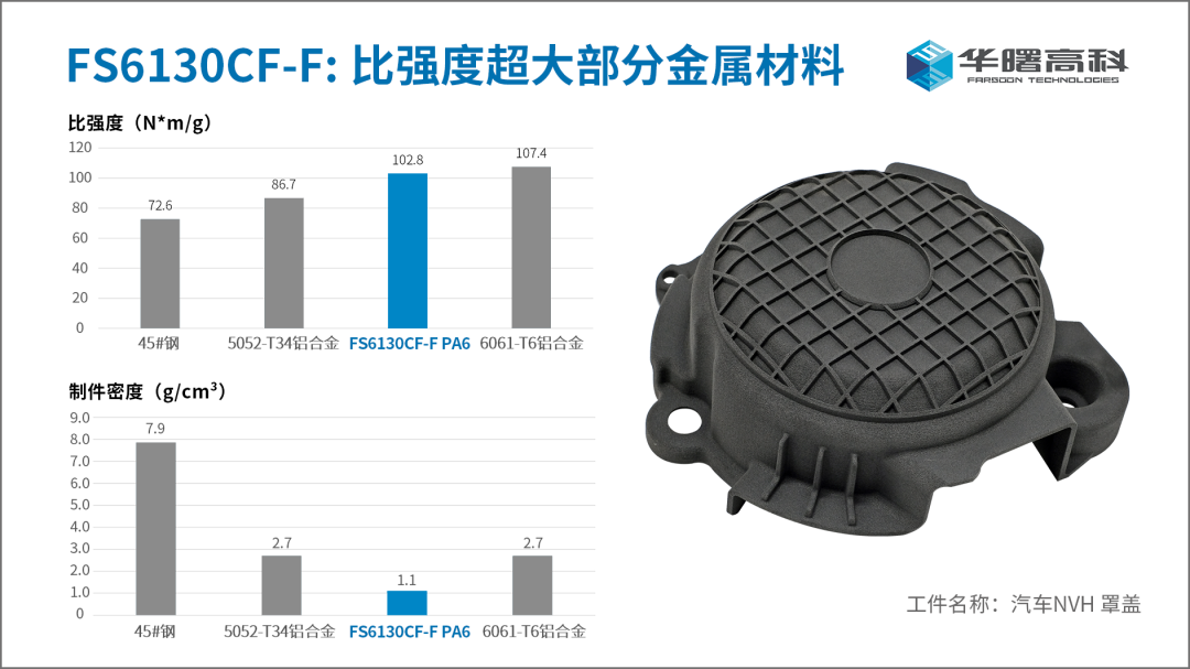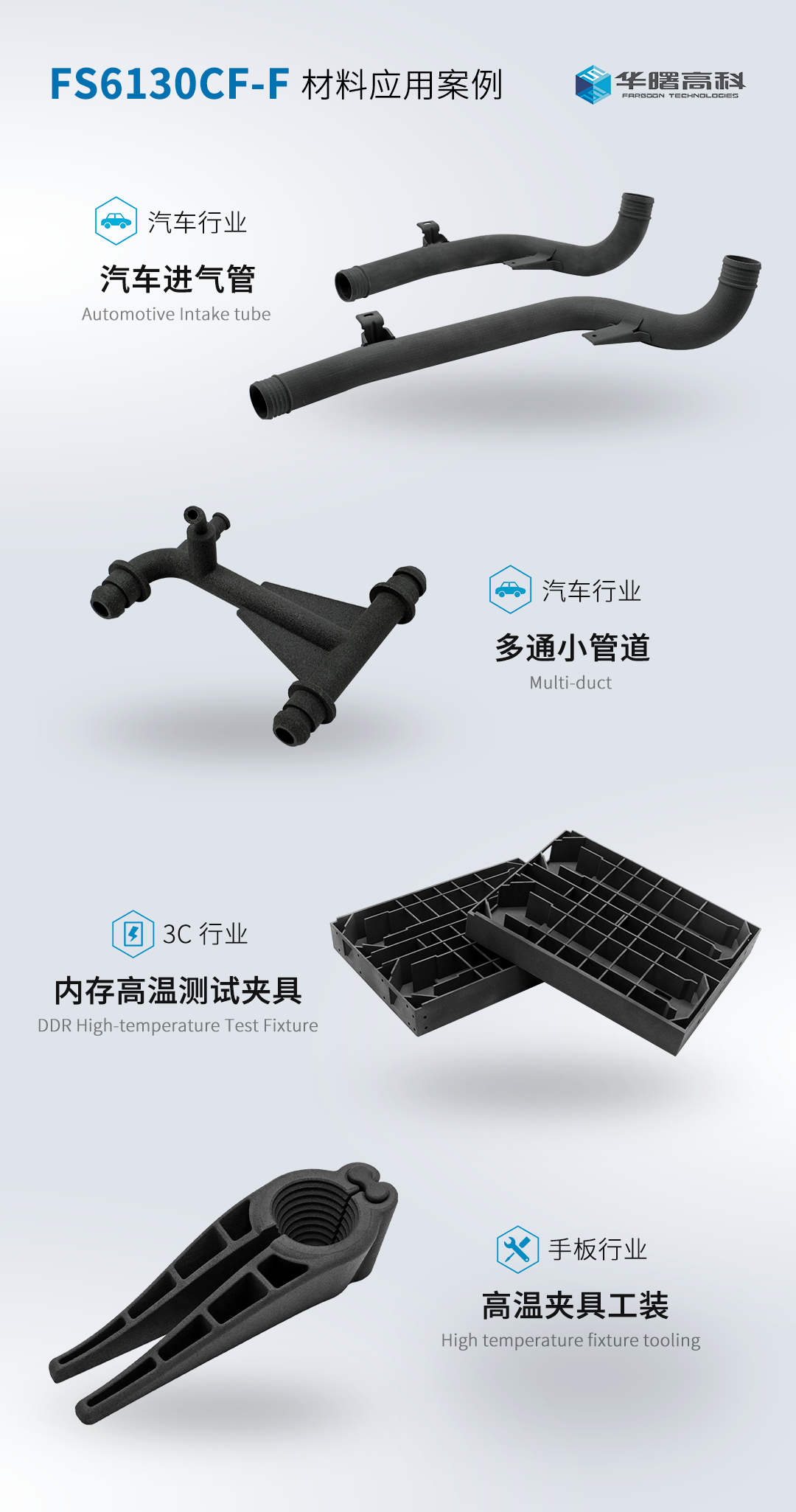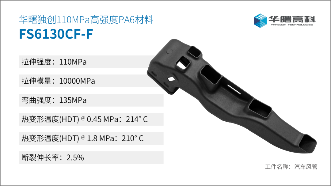 FS6130CF-F能够在高温下保持稳定的性能,不易变形或破裂,确保工件长时间稳定使用,经测试其性能可媲美注塑PA6玻纤增强材料。