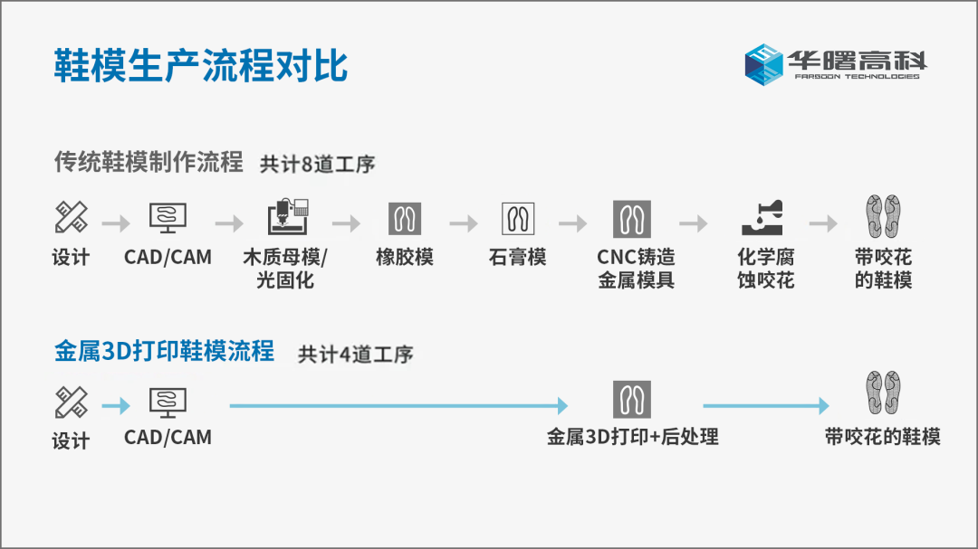自2019年以来,华曙高科金属3D打印技术主要应用于爆米花鞋模、EVA鞋模及RB鞋模等多类产品,创新开发十余种工艺,将传统鞋模制造经验与先进3D打印技术优势相结合,助力鞋业用户在竞争激烈的市场中保持优势,实现可持续增长和发展——