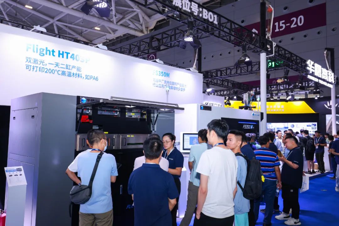 Flight HT403P-H-2双激光配置,拥有一天二缸高产能,可打印耐200°C高温材料,能够兼顾生产型用户对效率、质量、成本的极致追求,可代替小批量注塑模具业务,助力产业化批量生产。展会现场设备全程稳定开机烧结PA6材料,吸引众多终端客户驻足交流。