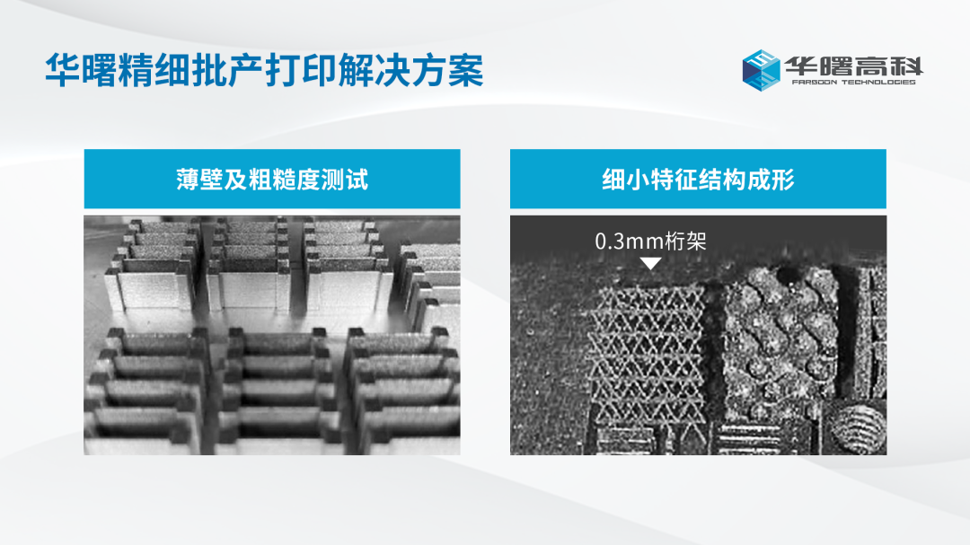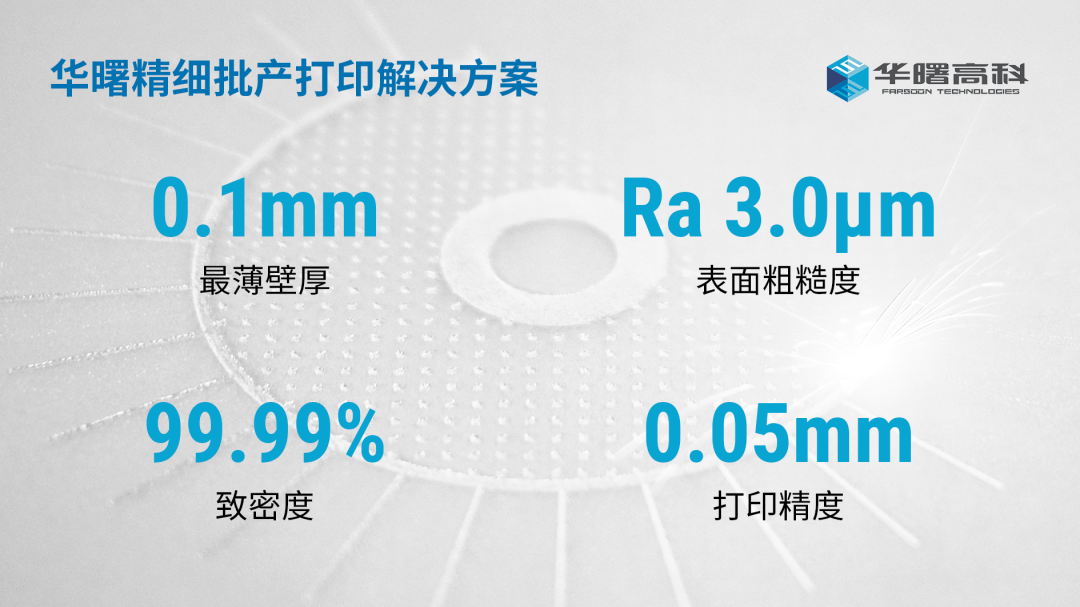 面对打印精度、表面粗糙度及薄壁成形的苛刻要求,华曙高科自主研发面向批量生产的精细打印解决方案,可直接成形粗糙度Ra 3.0μm的零部件,打印精度达0.05mm,最薄壁厚0.1mm。