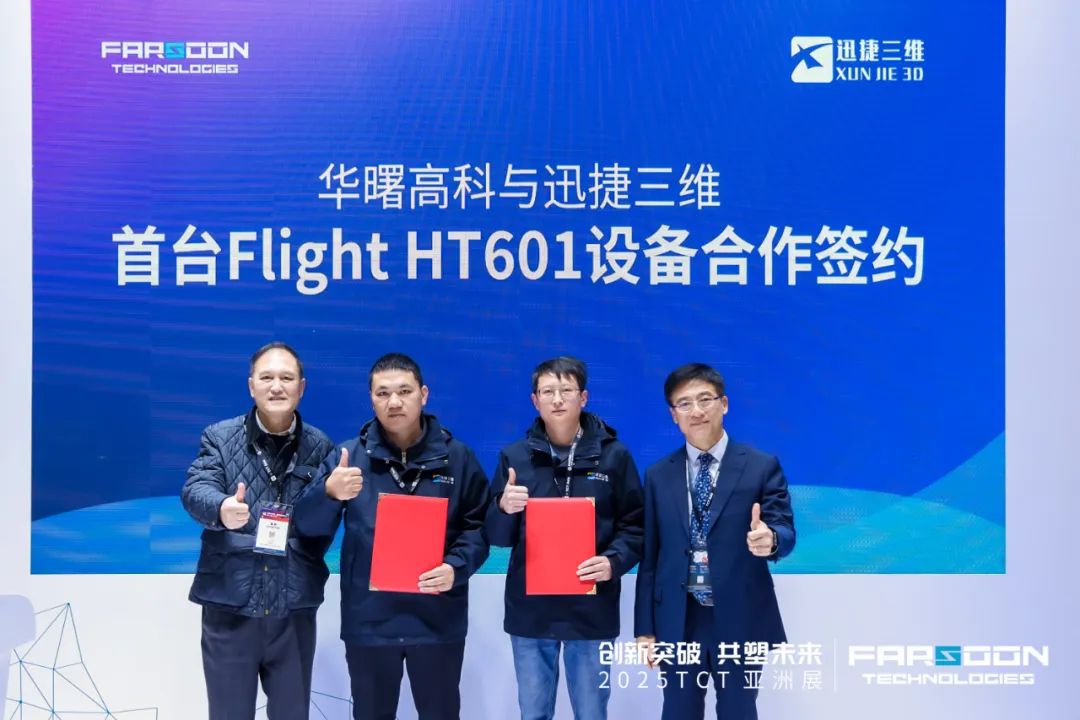 国内3D打印综合解决方案领域的领先企业——江阴迅捷快速成型科技有限公司(以下简称"迅捷三维"),于2025年引入国内首台Flight HT601P-4,目前该设备已完成安装调试并正式投入生产运营,为汽车、家电、消费品、航空航天等领域的产业化应用提供了突破性解决方案。