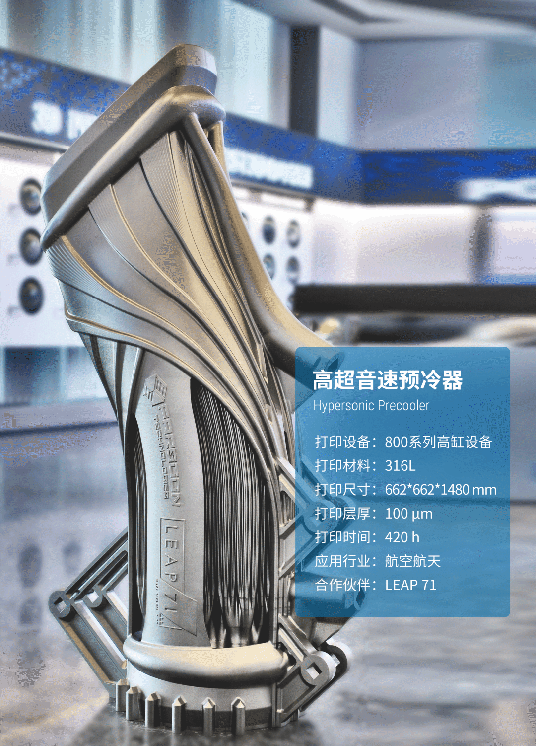这款高超音速预冷器,由LEAP 71旗下AI工程系统Noyron完成全流程计算设计,依托华曙高科800尺寸系列高缸设备一体打印成形,成为人工智能驱动设计与大尺寸金属3D打印技术深度融合的标杆之作,也为实现单级入轨的翼式航天飞行目标迈出了实质性的一步。