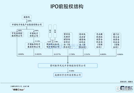 截至发行前,中国振华直接持有振华风光53.4933%股权,为公司的控股股东,而其背后的中国电子(国务院持股100%)为实际控制人,共控制57.3882%的股权。