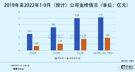 预计2022年1-9月公司营收将达到5.15亿元-5.85亿元,超2021年全年业绩,净利润为1.96亿元-2.35亿元。