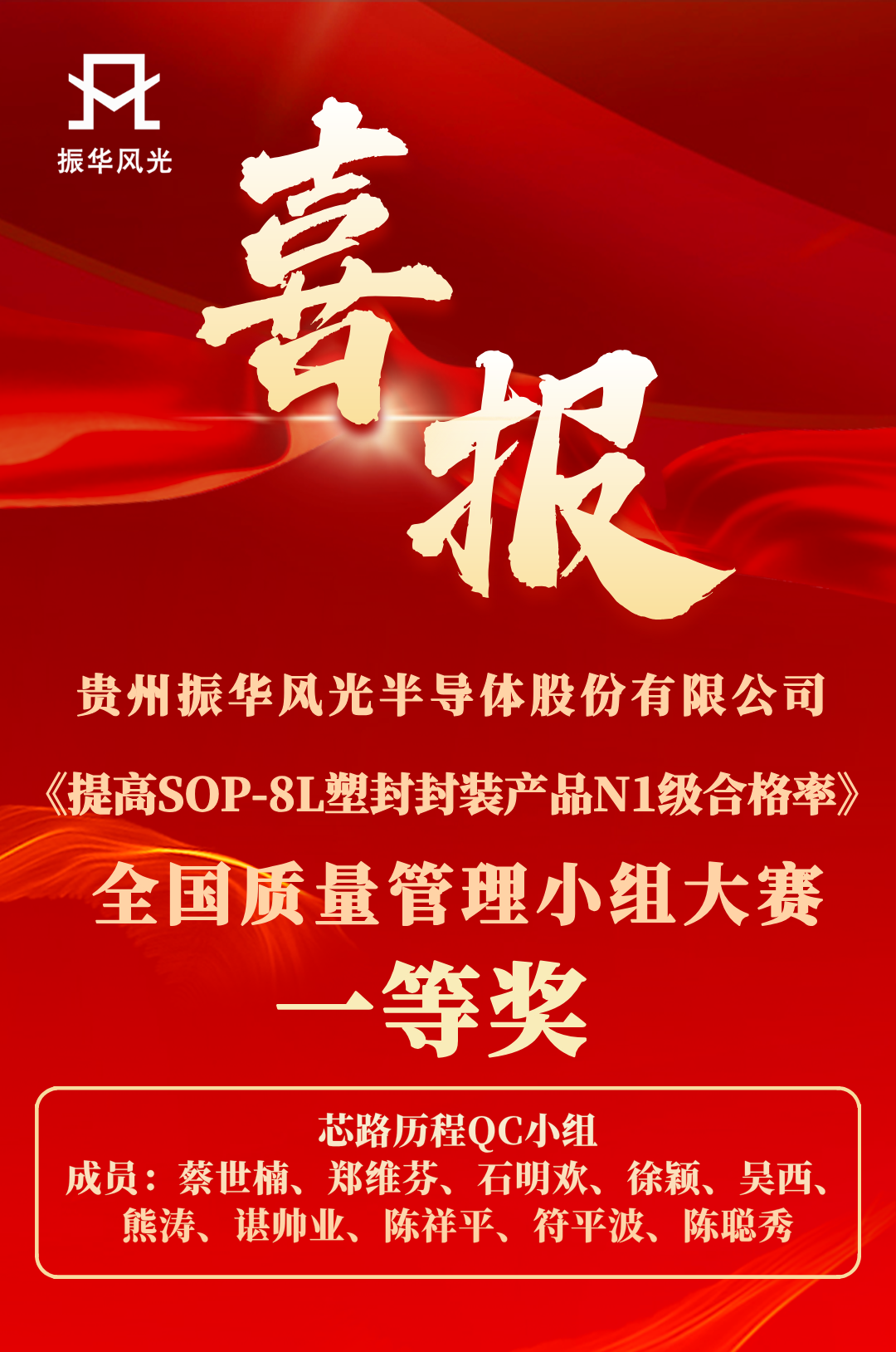 近日,在全国第47次质量管理小组代表会议暨全国质量信得过班组建设经验交流大会上,振华风光“芯路历程QC小组”凭借成果《提高SOP-8L塑封封装产品N1级合格率》从全国550余项成果中脱颖而出,荣获全国质量管理小组一等奖。