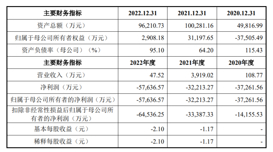 从业绩来看,2020年至2022年,智翔金泰营收分别为108.77万元、3919.02万元、47.52万元,归母净亏损3.73亿元、3.22亿元、5.76亿元,也就是说,三年亏损总额达到12.71亿元。