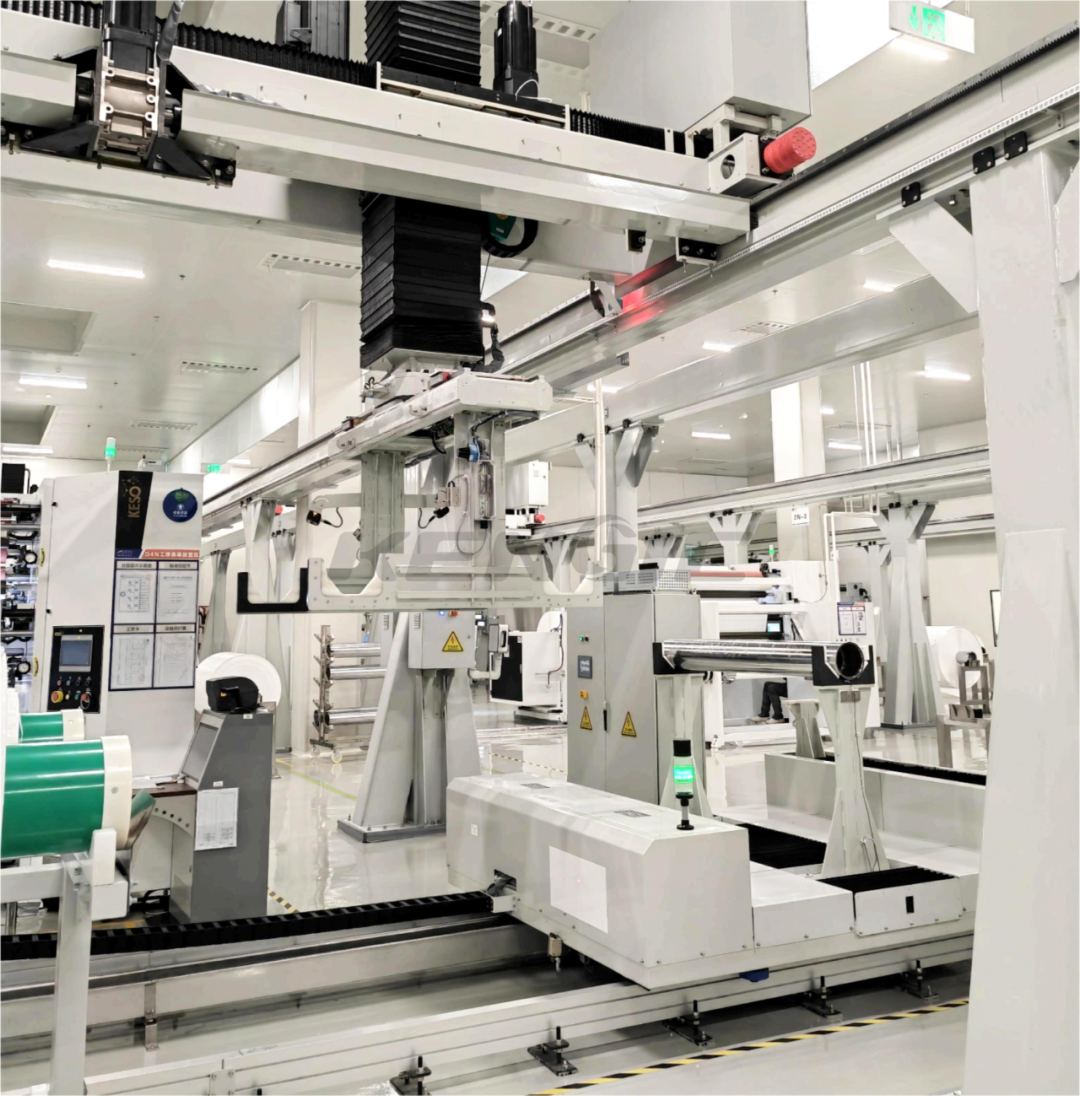 该项目作为新能源原材料行业的自动搬运项目,以提高效率、提升客户体验为导向,满足了客户搬运负载大、行程长、精度高的需求点。同时引入高精度龙门机器人技术,实现多机械臂共梁协同控制,助力客户达成“降成本、提效率”目标。