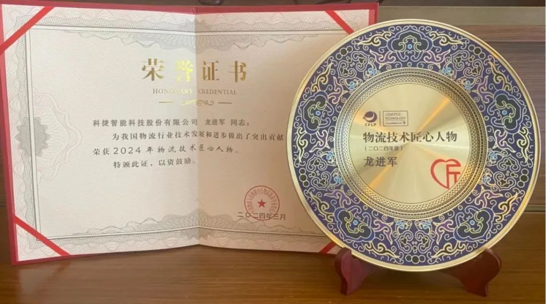 除了企业级奖项,本次大会还颁发了2024年物流技术匠心人物,以表彰为我国物流行业技术发展和进步作出突出贡献的企业家和专家学者。科捷智能董事长龙进军成功当选,他的先进事迹体现了年轻一代勇于探索的创新精神以及脚踏实地的实干作风。