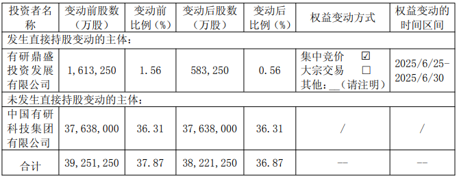 具体来看,有研鼎盛2025年6月25日至2025年6月30日通过集中竞价减持有研粉材103万股,减持价格区间为35.34元/股至35.75元/股,减持总金额36,599,775.27元。