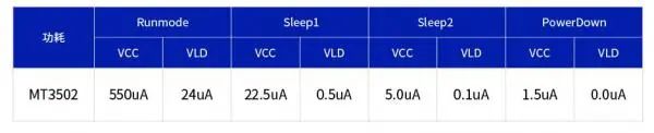 超低功耗设计,典型电流为工作模式550uA,睡眠模式5uA,待机模式1.5uA