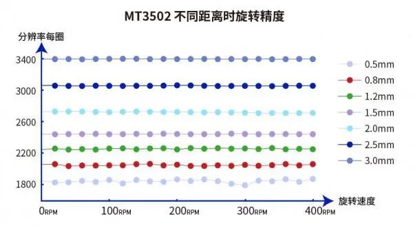 基于高密度pixel点阵,MT3502传感器在不锈钢平面上可支持分辨率高达5000 CPI的移动检测,在直径1mm不锈钢转轴1mm距离上可支持分辨率3200计数/圈。该传感器芯片拥有领先的信噪比水平,内置增益自适应技术和底噪消除技术,可动态适配环境干扰,还原真实信号。