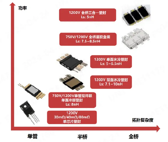图注:芯联集成单面散热塑封全桥SiC模块,主要用于新能源汽车主驱逆变器等