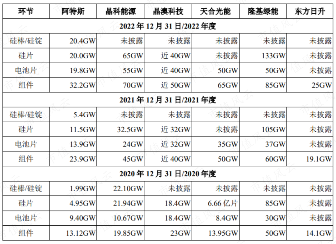 在光伏行业如火如荼的今天,只要有产能,基本都能打满。因此产能决定出货量,出货量决定业绩:2022年公司出货量为21GW,前四家出货量均超过40GW。