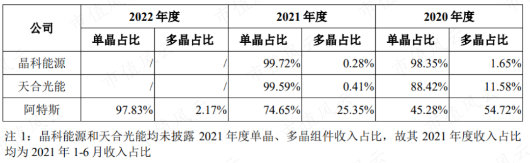 2020年和2021年公司多晶收入占比还较高,分别为55%和25%,同行中隆基绿能一直专注于单晶产品,晶科能源2020年多晶占比仅不到2%,天合光能2020年多晶占比为12%、2021年仅0.4%。