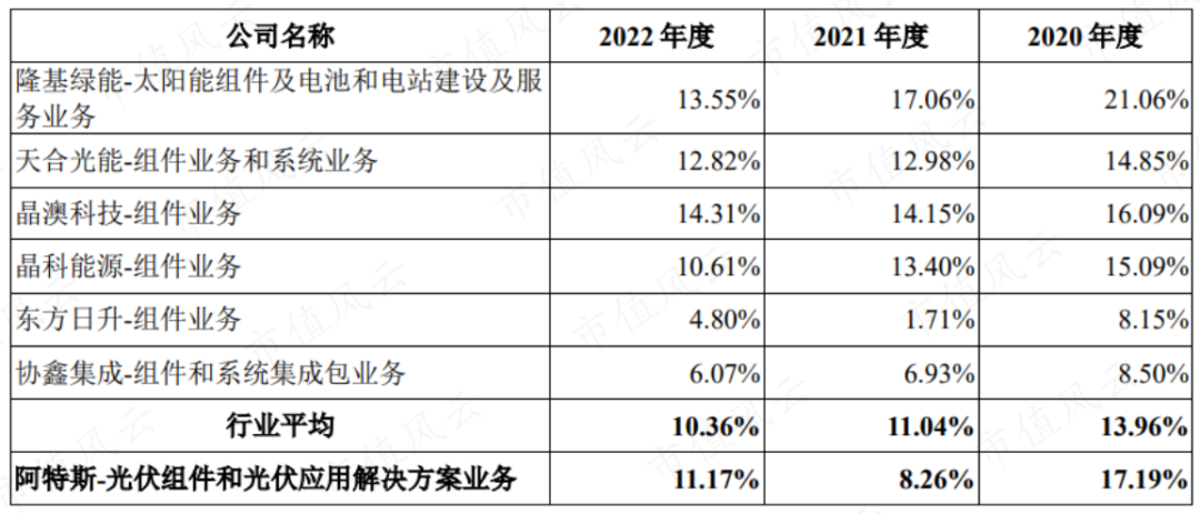 对比组件毛利率可以发现,2021年公司组件毛利率仅为8%,而行业平均为11%,前四名也均在13%以上。