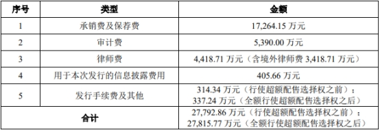 阿特斯本次发行费用总额为27,792.86万元(行使超额配售选择权之前);27,815.77万元(全额行使超额配售选择权之后)。其中,中国国际金融股份有限公司、华泰联合证券有限责任公司、东吴证券股份有限公司获得承销费及保荐费17,264.15万元。