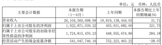 昨日晚间,阿特斯披露2023年半年度报告。今年上半年,公司实现营业收入261.05亿元,同比增长31.71%;归属于上市公司股东的净利润19.23亿元,同比增长321.75%;归属于上市公司股东的扣除非经常性损益的净利润17.25亿元,同比增长284.18%;经营活动产生的现金流量净额5.41亿元,同比减少28.07%。