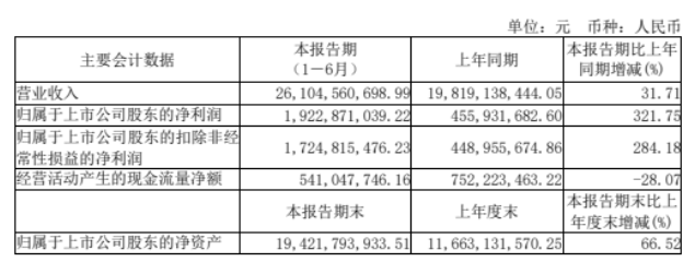 8月22日晚间,阿特斯发布2023年半年度报告,上半年(以下简称报告期)营收约为261.05亿元,同比增加31.71%;归母净利润约为19.23亿元,同比增加321.75%;扣非后归母净利润约为17.25亿元,同比增长284.18%。
