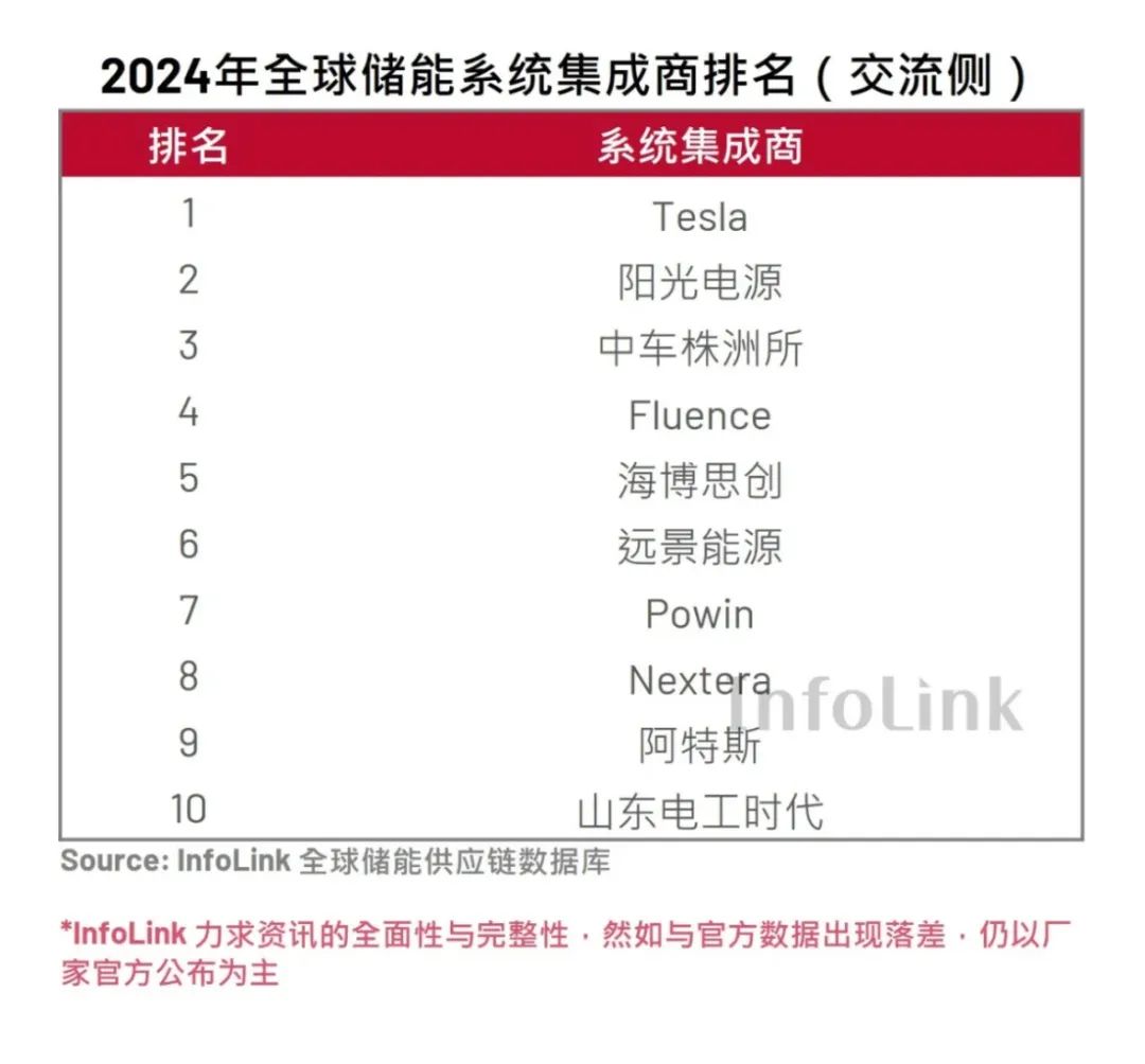 与此同时,公司储能业务迎来高速增长,弥补了光伏业务收缩带来的业绩空缺。2024年,阿特斯储能业务出货达到6.5GWh,同比增长505.28%。在InfoLink公布的2024年全球储能系统集成商(交流侧)排名前十中,阿特斯位列第九。