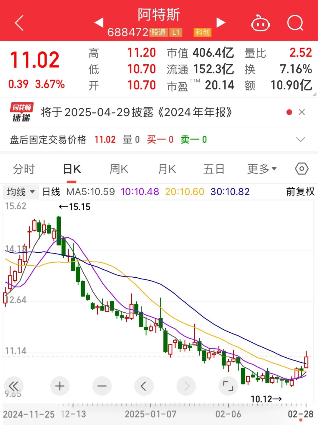 2月28日,阿特斯每股报11.02元,涨幅3.67%,总市值406.44亿元。