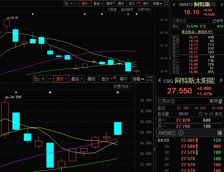 其实这种情况,大家都能预料到,这也是为啥12月1日A股 阿特斯 股价大跌近7%,而美股 阿特斯 太阳能却开盘大涨超10%的直接原因。