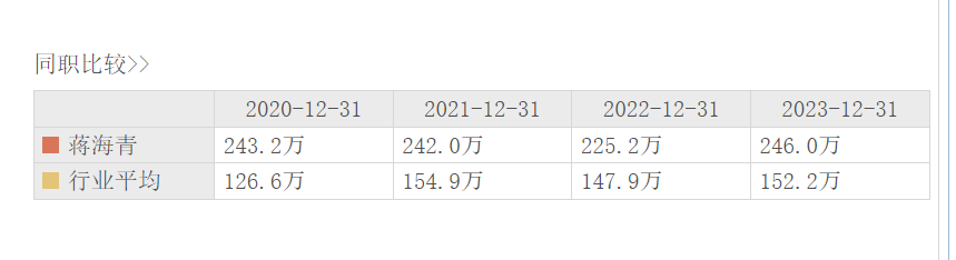 萤石网络董事长为蒋海青,2020年至2023年薪酬分别为243.2万元、242万元、225.2万元、246万元。