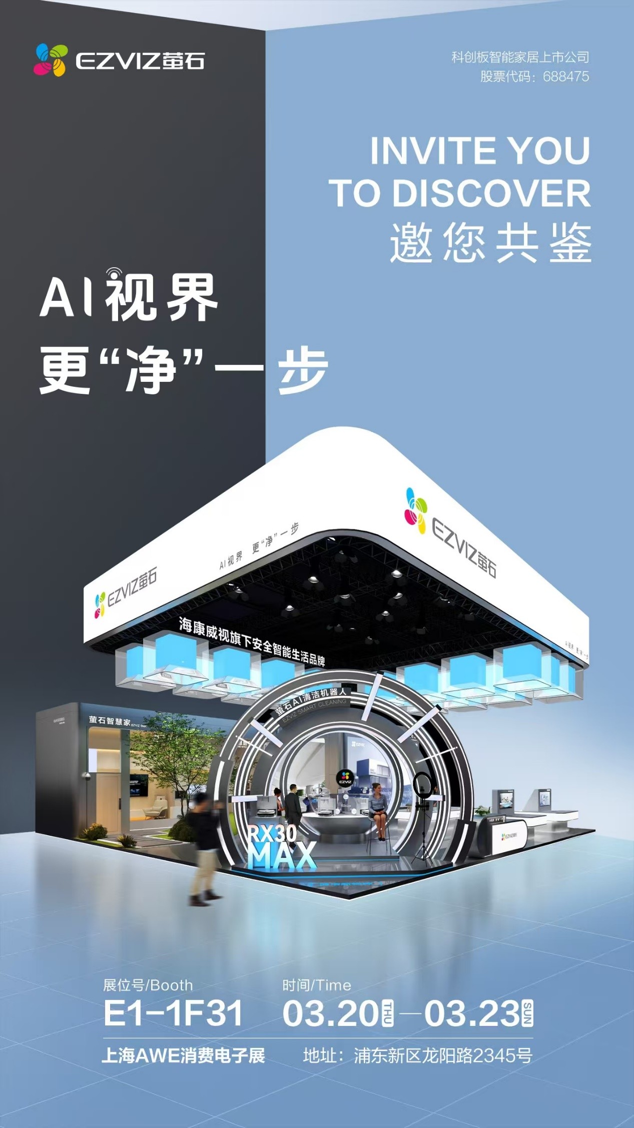 全球三大家电及消费电子展之一的中国家电及消费电子博览会(AWE),即将于 3 月 20 - 23 日在上海盛大开幕。作为行业创新与科技发展的前沿阵地,AWE 每年都吸引着全球目光。今年,萤石网络将再度闪耀登场,携旗下智能清洁产品亮相E1馆1F31 展位,为观众打造一场别开生面的智能清洁科技盛宴。