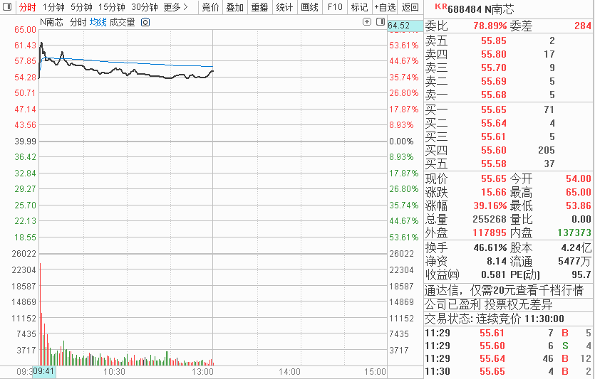 南芯科技发行价39.99元,上午盘中最高上涨至65元,最高涨幅达62.54%。让人疑惑的是,该股可是典型的“双高”股:高市盈率、高发行价。