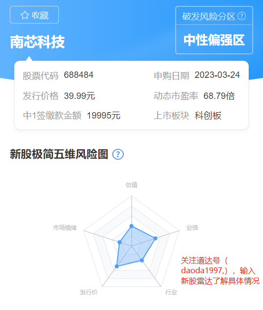 当然,新股雷达也对南芯科技划分为中性偏强区。