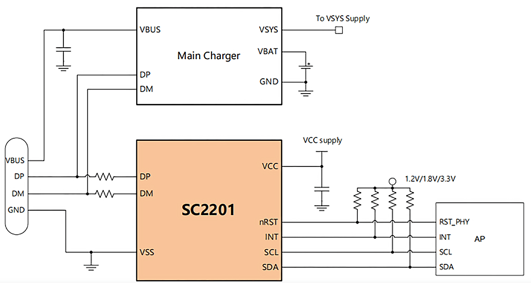 该协议芯片集成了BC1.2 检测、UFCS 协议接收和发送、内部CRC、自适应波特率、响应确认、自动重试以及定时器和计数器等功能。SC2201 采用 WLCSP-8;1.572mm*0.772mm 高集成度封装。可广泛应用于手机、平板电脑以及其他快充设备中。