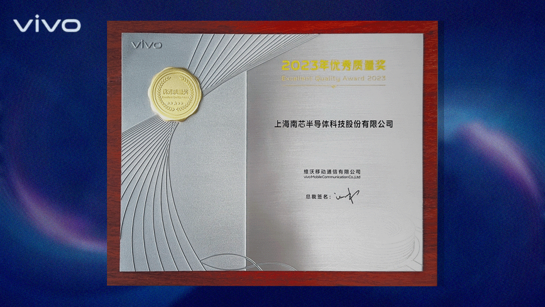 南芯科技以高质量、高标准严苛把控产品品质,获得vivo高度认可,荣获【vivo 2023优秀质量奖】。