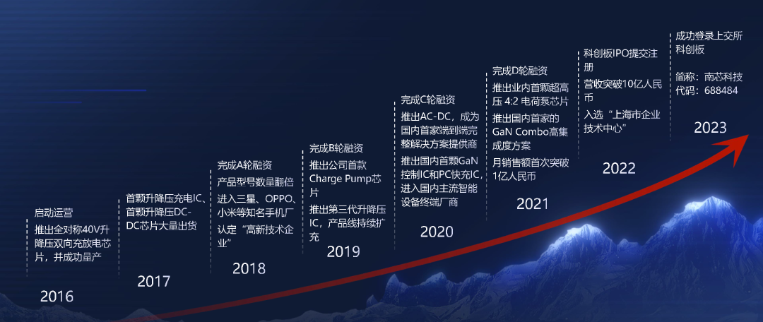 南芯科技,2016年启动运营,以高性能电源管理IC为切入点,围绕手机、PC和便携式设备布局,延展至工业和汽车领域,是国内领先的模拟和嵌入式全领域平台型公司,于2023年正式登陆科创板上市。