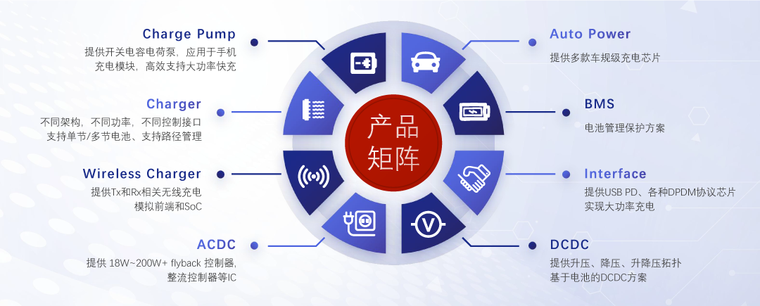 公司拥有前瞻的产品定义能力与高效的技术落地能力,基于自主研发的升降压充电、电荷泵和GaN直驱等核心技术持续推进产品研发与迭代,产品矩阵不断丰富。