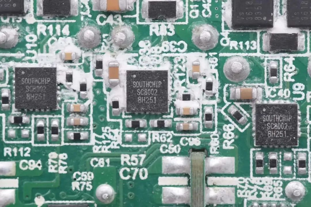 充电器内置的三颗同步降压控制器均来自南芯科技,对应三路输出,具体型号为SC8002,其支持4.6~36V输入电压,输出电压可调,支持5V固定输出和快充应用。芯片支持高精度输出限流,支持双通道独立限流,SC8002还可以针对频率设置并选择PWM和PFM工作模式。通过最小的BOM,实现最大的功能。