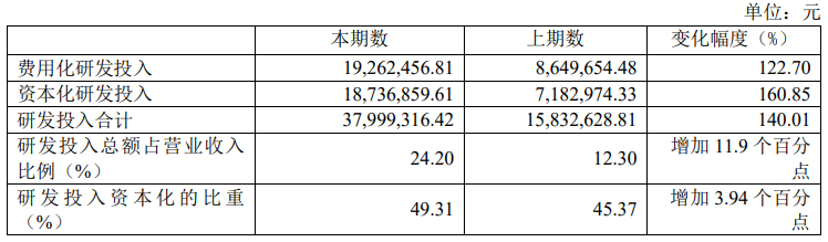 面对公司较弱的盈利水平,一个更为严重的问题是,公司研发费用资本化处理的比例在不断提高,此举或存美化公司利润数据的嫌疑。截至2021年6月底,公司研发投入合计为3799.93万元,研发投入资本化的比重高达49.31%,增加了3.94个百分点。