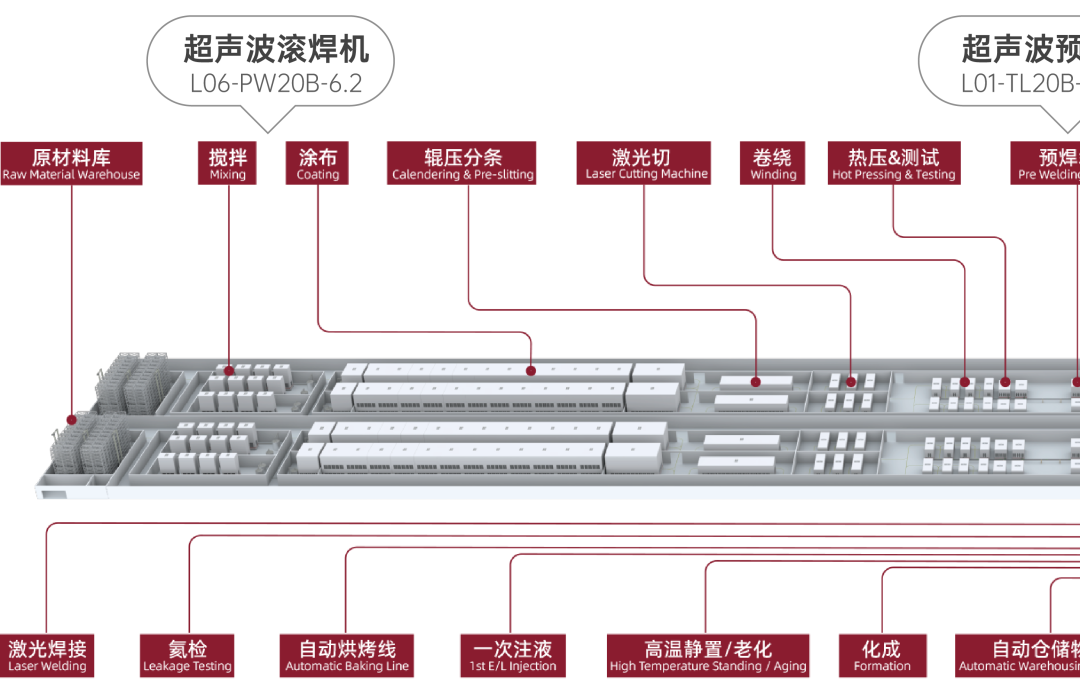 随着新能源车进入高速成长期,超声波金属焊接技术已广泛应用于新能源汽车锂电池行业,新一轮动力电池产能扩建也正在全球范围内启动。为进一步适应市场发展的需求,利元亨通过对超声金属焊接技术和工艺的研发,在提升现有电芯体系的超声工艺能力的基础上,拓展新工艺、新设备和新智造的开发和应用,推出系列化超声波金属焊接设备。
