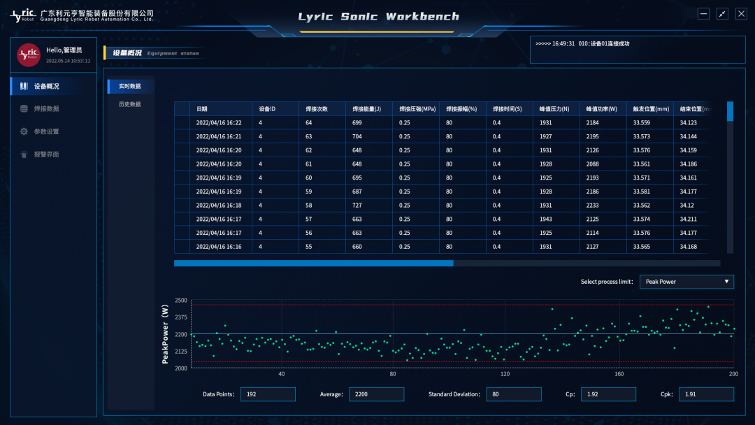 The first "dual control welding mode", that is, two modes of energy welding and deep welding are used to control the welding process. Equipped with powerful Lyric Sonic Workbench software, it can effectively expand the parameter adjustment process window, reduce false welding and over welding, and provide up to 10 kinds of welding. Welding process data, innovatively increase the data monitoring of the deformation degree of the tab after welding. The equipment has significant advantages in real-time prediction of welding quality, high detection of the inflow and outflow of defective parts, and identification of abnormality in the welding system.