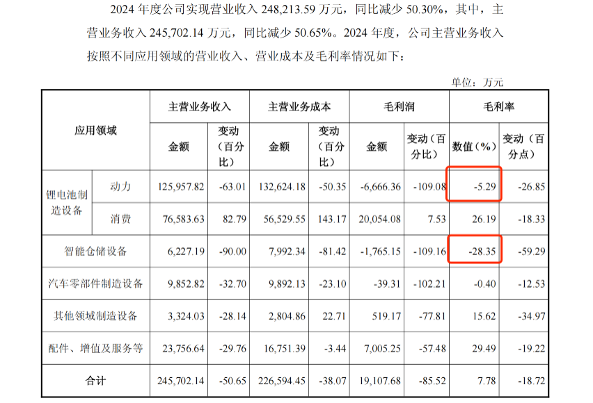 主营业务毛利率降,锂电设备亏损或反映核心商业模式