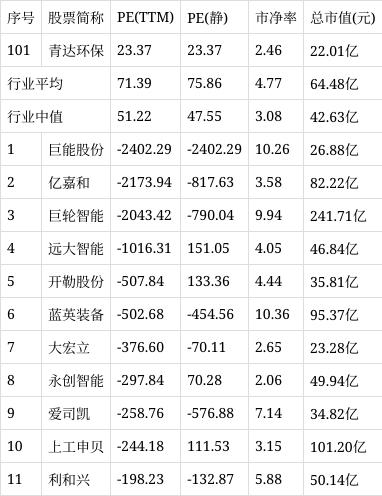 从行业市盈率排名来看,公司所处的专用设备行业市盈率平均71.39倍,行业中值51.22倍,青达环保排名第101位。