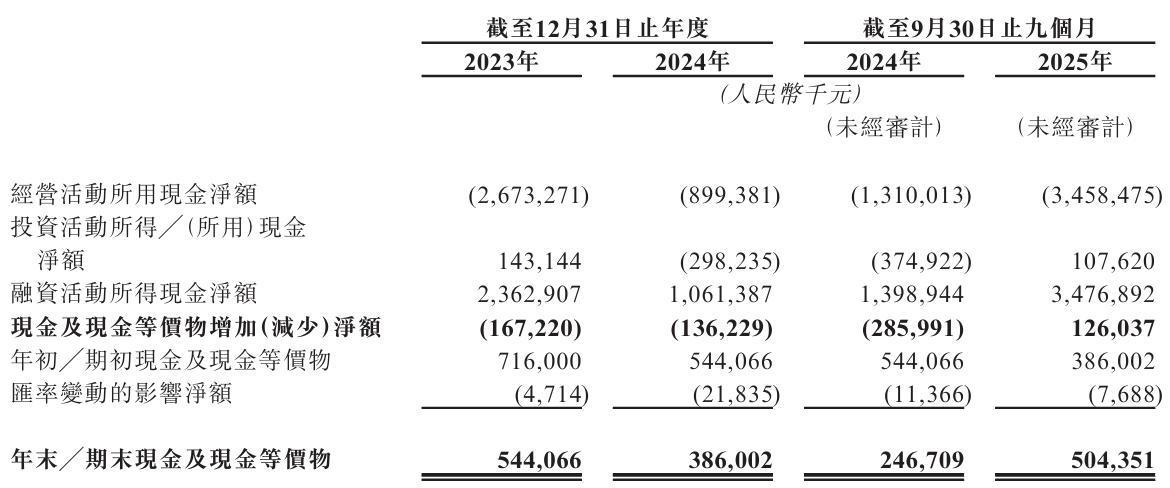 比毛利率变化更具压迫感的是经营现金流表现。《财中社》发现,聚和材料经营活动产生的现金流量净额持续为负,2024年净流出约8.99亿元,2025年前三季度不但未见改善,净流出金额甚至上升到了-34.58亿元。