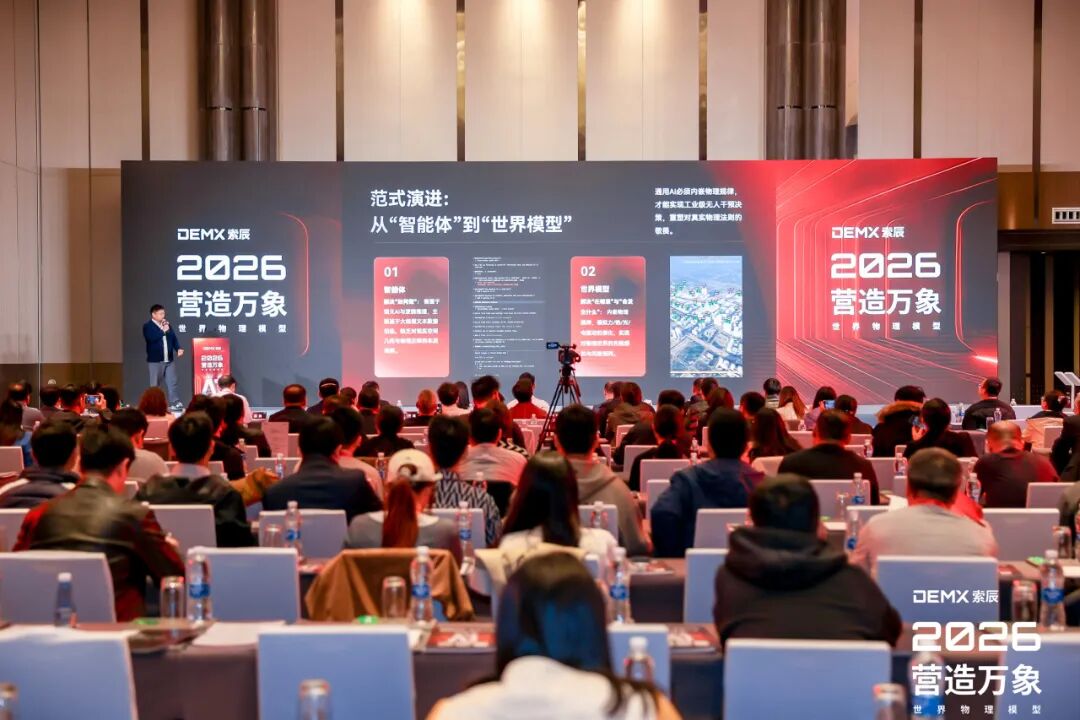 作为本次发布会的核心亮点,索辰世界物理模型“营造·万象”继上海首站亮相后,在北京站进行了深度呈现。“营造·万象”融合空间生成与物理法则、跨模态与多尺度特征提取能力、从局部装备到全域复杂环境的联合计算底座,将为复杂工业场景下的多智能体协同、极端环境预测及自适应决策,提供具备真实世界法则约束的基础大模型支撑。