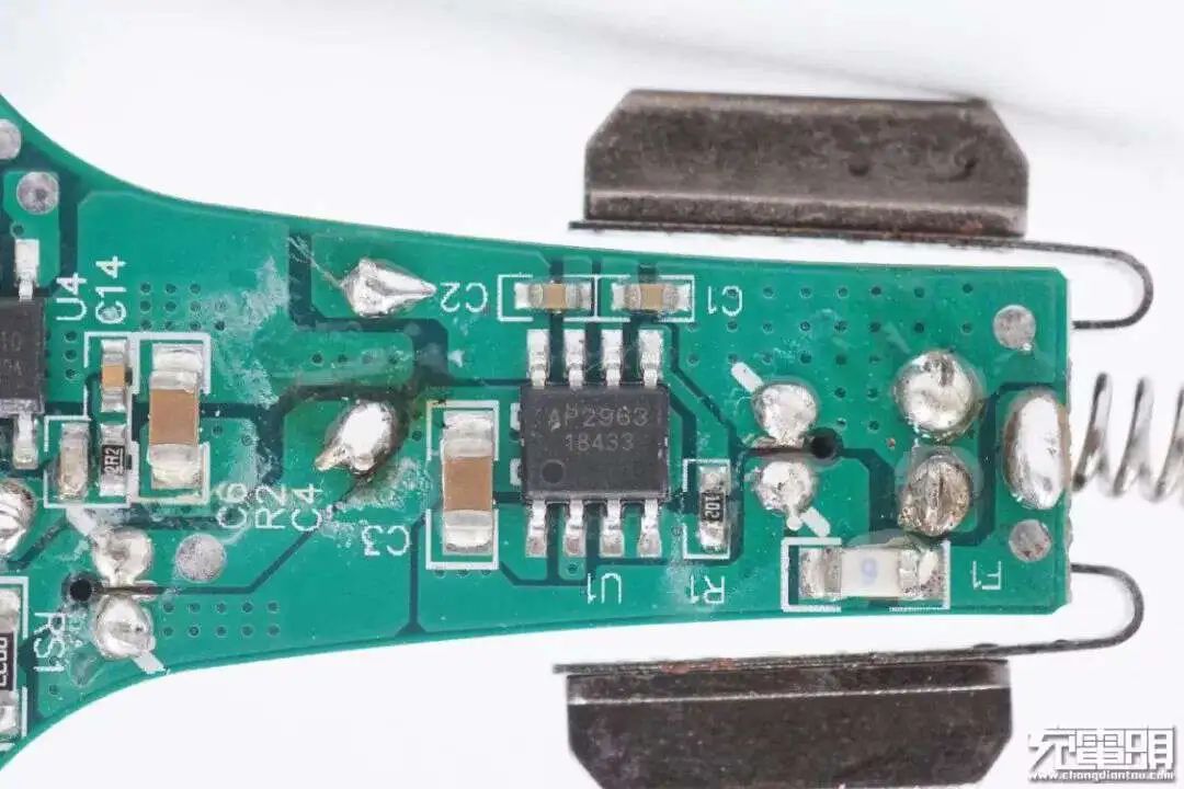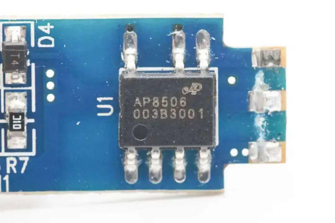 芯朋微电子AP2963负责两个USB-A接口的降压转换。芯朋AP2963是一款采用SO8-EP封装,高能效,高压同步降压芯片。