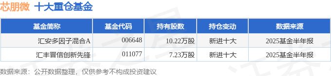 持有芯朋微最多的基金为汇安多因子混合A,目前规模为3.25亿元,最新净值1.8867(8月15日),较上一交易日上涨1.63%,近一年上涨53.27%。该基金现任基金经理为柳预才。