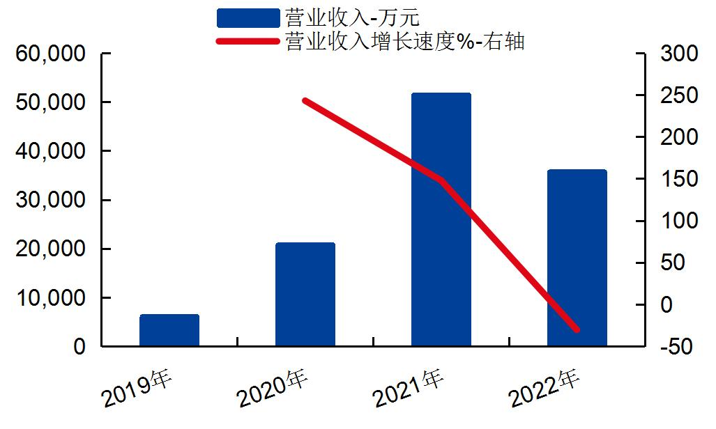在射频前端国产化趋势下,随着不断加快客户导入速度和增强新产品研发能力,慧智微的收入规模快速上升。2019-2021年及2022年1-6月,慧智微的营业收入分别为0.60亿元、2.07亿元、5.14亿元、2.06亿元。经天健会计师事务所审阅,2022年,慧智微营业收入为3.57亿元。慧智微2022年收入出现下滑主要原因是俄乌冲突、通胀上升等因素导致全球消费力下降,下游主要终端客户及其供应链进入去库存周期。