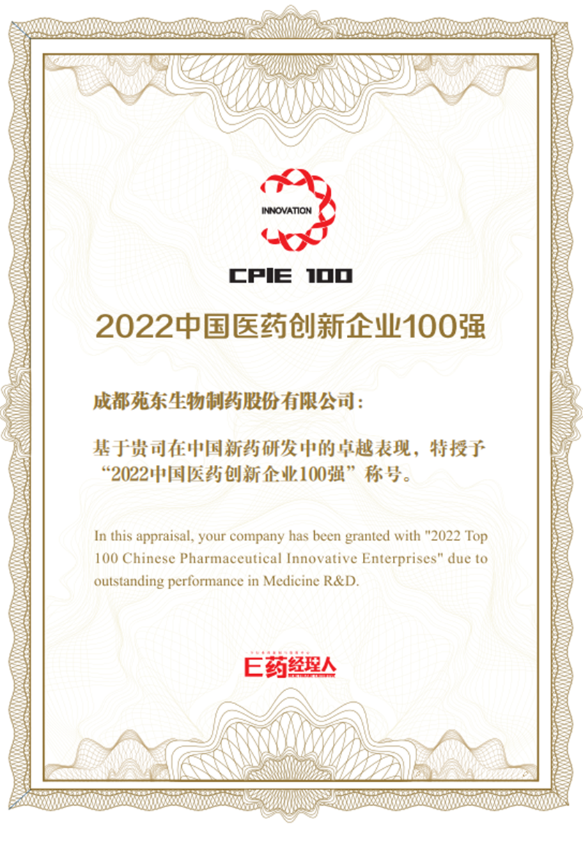 2022年9月,E药经理人平台重磅发布了“中国医药创新企业100强”及“中国医药创新升级榜样50”,成都苑东生物制药股份有限公司(股票代码688513,简称“苑东生物”)荣登榜单。