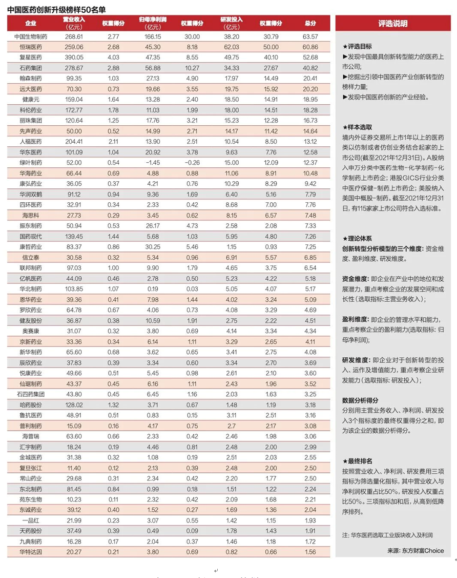 中国医药创新升级榜样50
