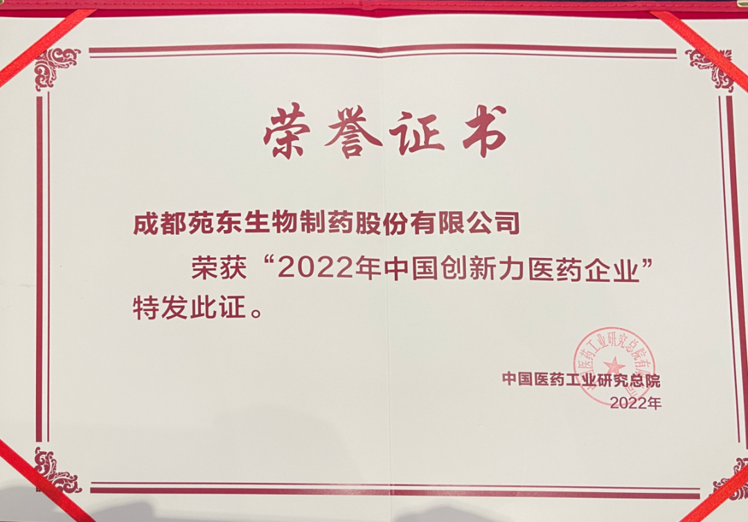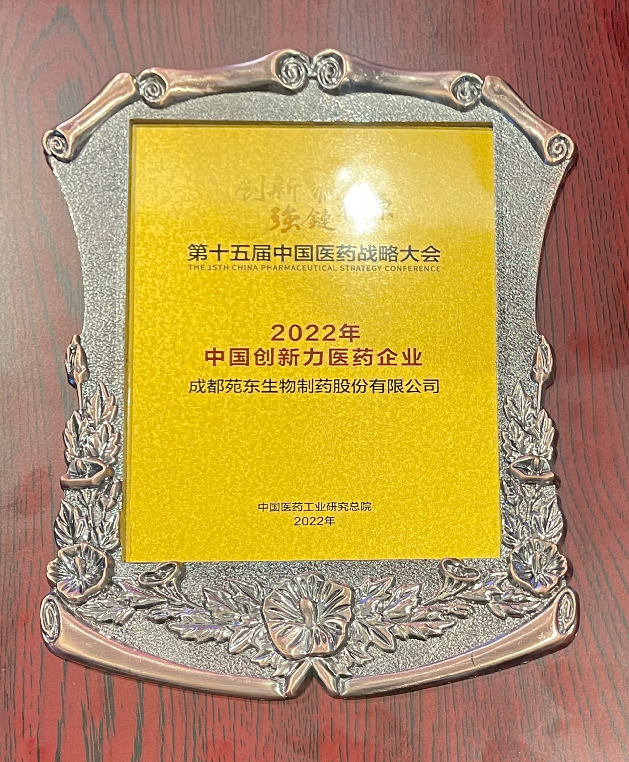 2023年3月18日,由中国医药工业信息中心、石家庄高新技术产业开发区管理委员会联合主办的第十五届中国医药战略大会在石家庄召开。大会发布了“2022年中国创新力医药企业”榜单,成都苑东生物制药股份有限公司(简称“苑东生物”)再次荣登该榜单。
