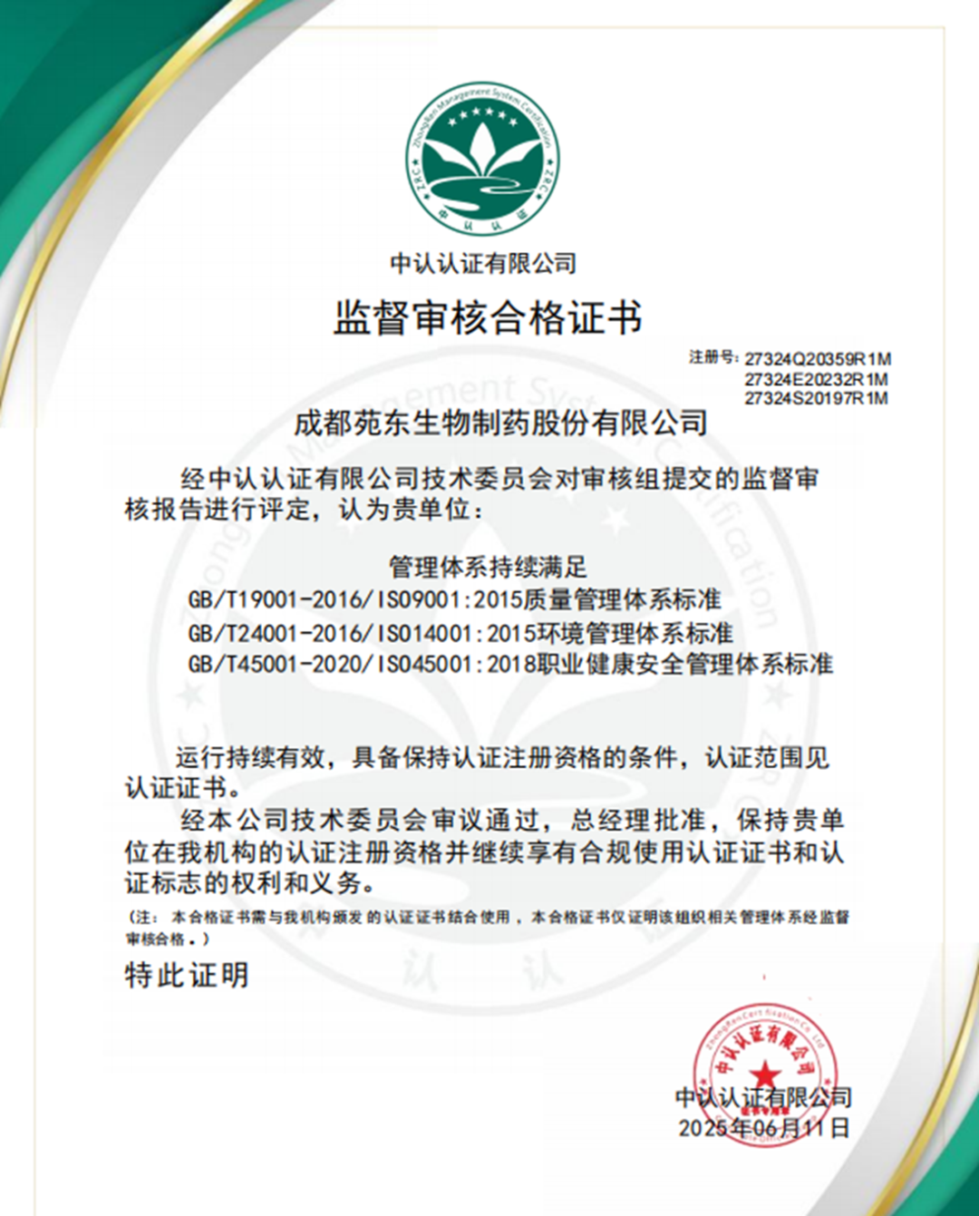 未来,公司将始终秉持“服务大众,成就自我,成为最受尊重和信赖的医药企业”的理念,以更高的标准、更严的要求持续改进QES管理体系,致力于打造行业内质量领先、环境友好、安全可靠的标杆企业。在不断提升产品和服务质量的同时,积极履行社会责任,为客户创造更大价值,为员工谋求更多福祉,为推动行业高质量发展贡献力量。