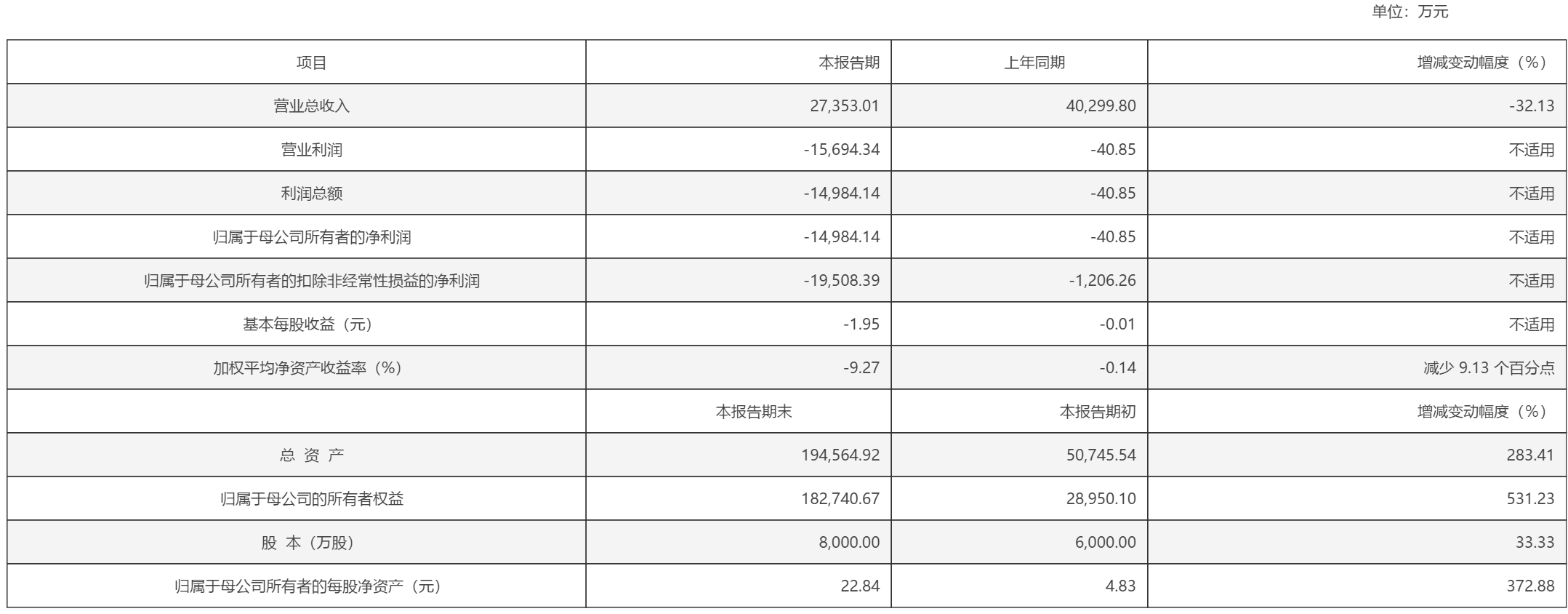 报告期末,公司总资产194,564.92万元,较期初增长283.41%;归属于母公司的所有者权益182,740.67万元,较期初增长531.23%。