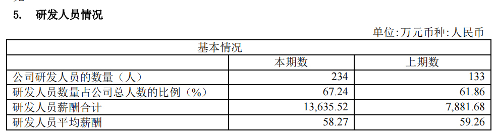 为实现加速补充产品线的目的,裕太微采取了措施吸引各模块人才。截至报告期末,裕太微总人数为348人,较之2022年增加100多名人员。其中研发人员234人,占总人数67.24%,占比较上年同期增加5.38个百分点。
